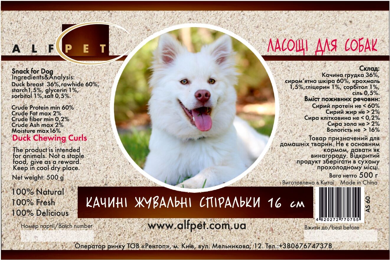AS60 Качині жувальні спіральки 16 сантиметрів, 500 гр., ящ. 20 шт.