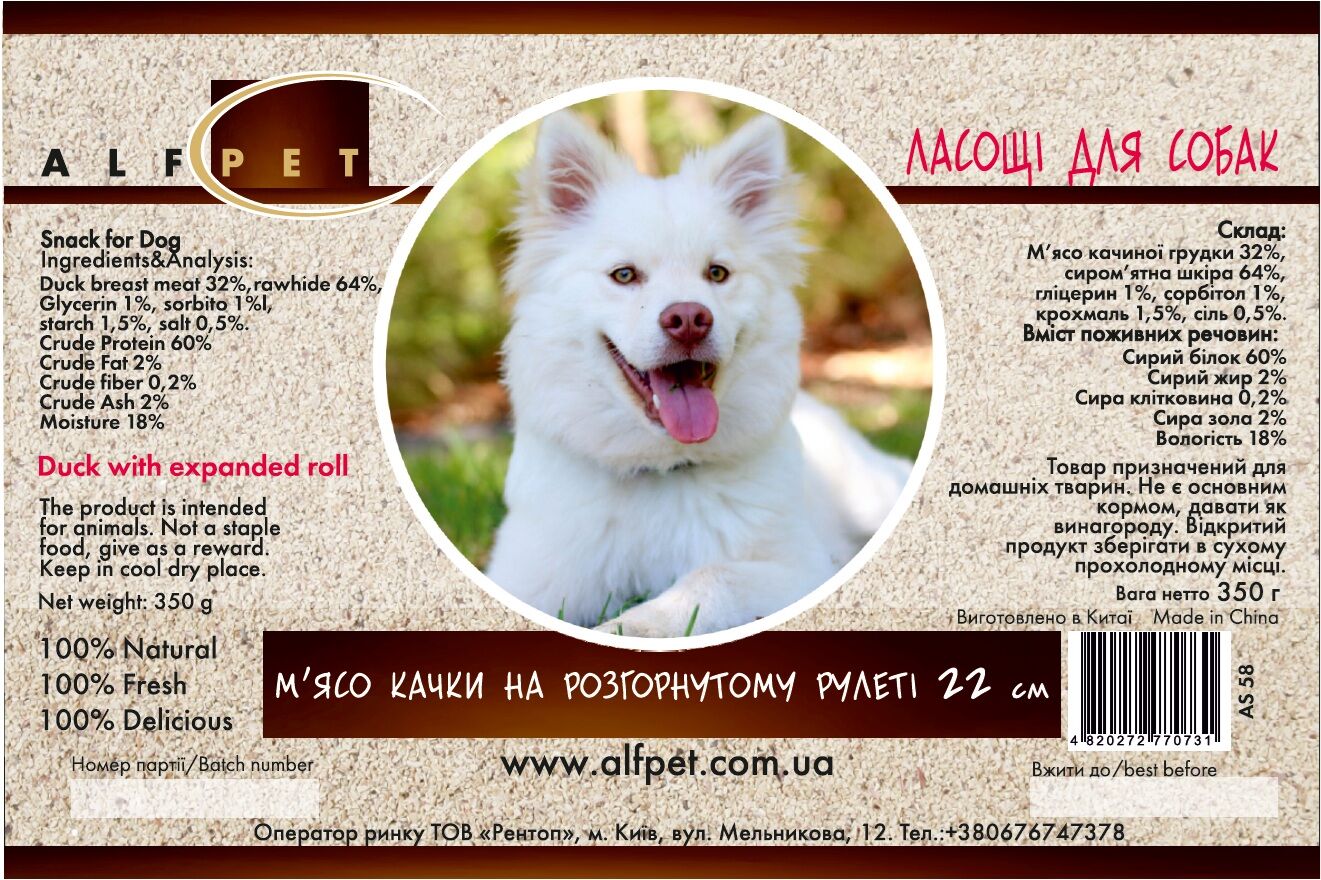 AS58 М'ясо качки на розгорнутому рулеті 22 сантиметри, 350 гр., ящ. 20 шт.