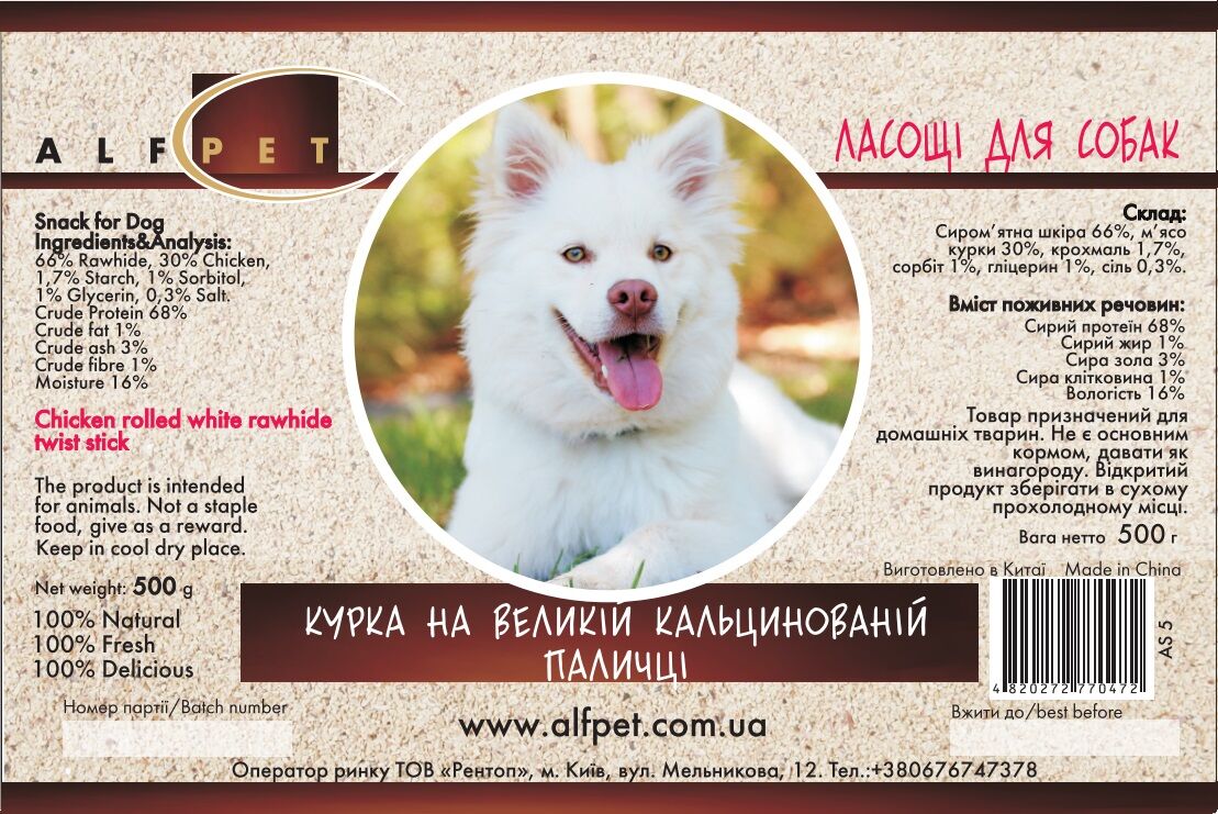 AS 5 Курка на великій кальцинованій паличці, 500 гр., ящ. 20 шт.